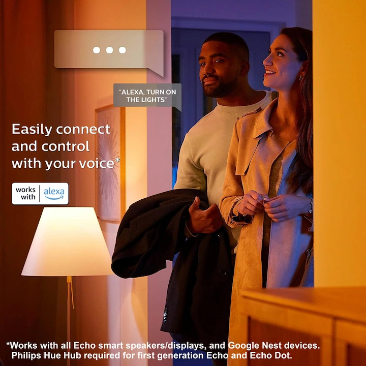 JOACA-TE CU CULORILE – Alegeti dintre 16 milioane de culori, inclusiv lumina alba calda pana la rece pentru a crea o atmosfera care se potriveste oricarei dispozitii. Joaca-te cu culoarea pentru a crea atmosfera perfecta pentru nopti de film, petreceri, povesti la culcare sau doar pentru a sta pe spate si a te relaxa.