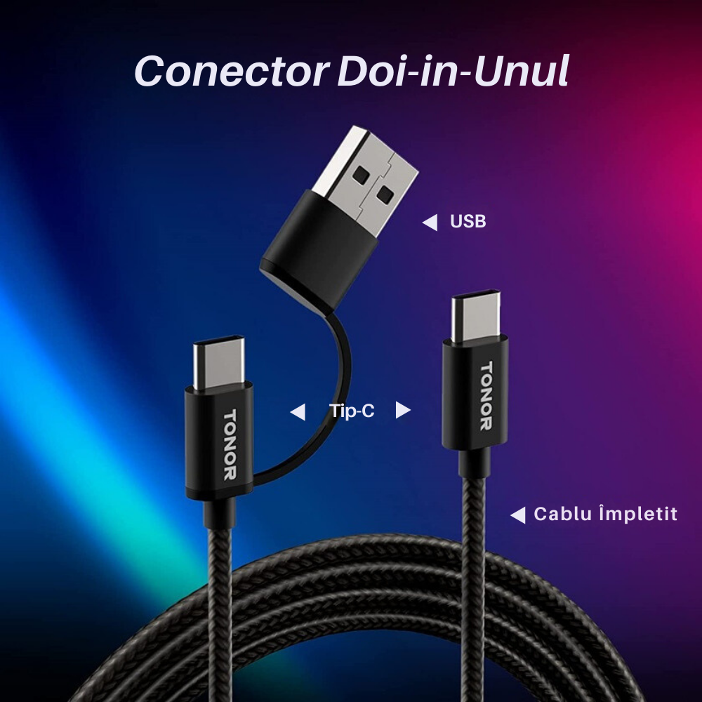 • Echipat cu un conector doi in unu ( USB & Type-C ), cablul microfonului este impletit pentru durabilitate.