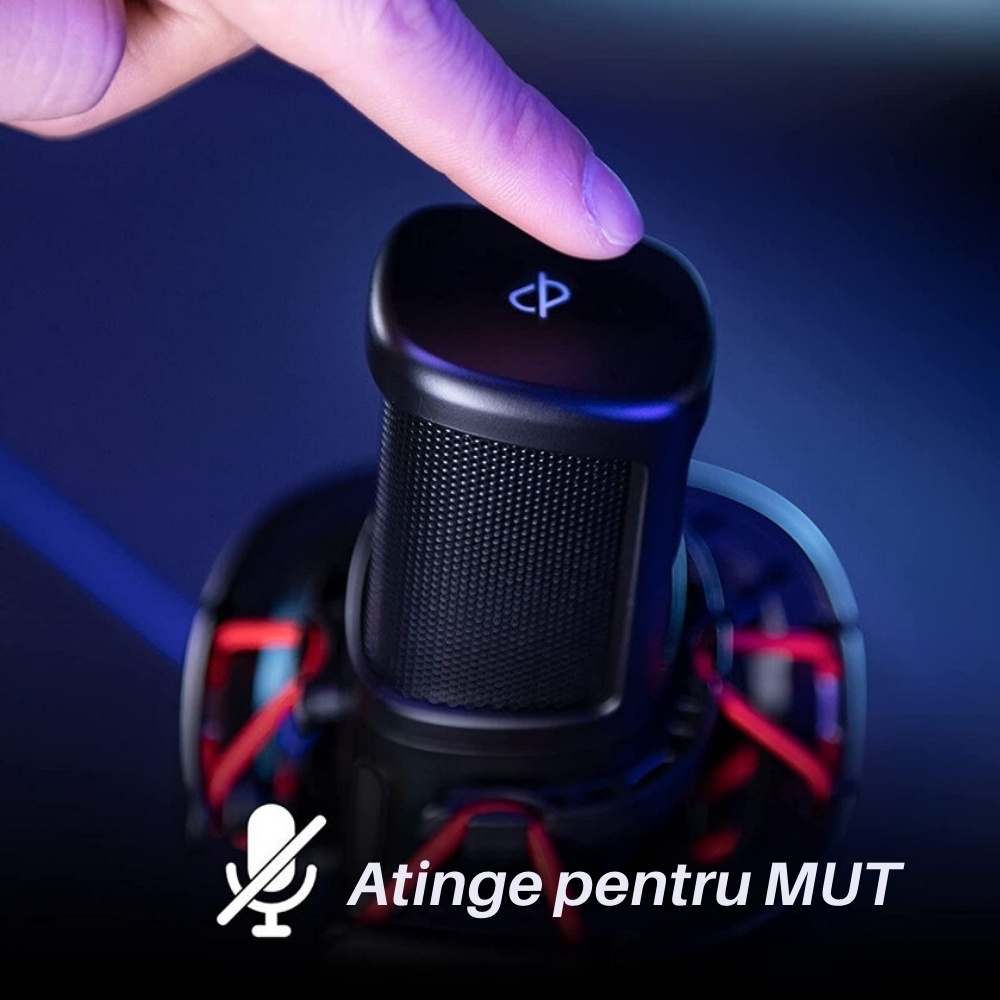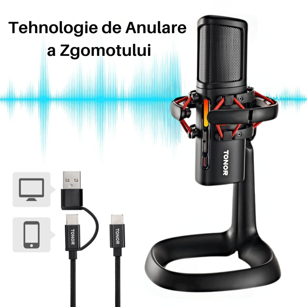 • Buton de Anulare a Zgomotului: Model cardioid pentru captarea clara a sunetului, reducand zgomotul de fundal.