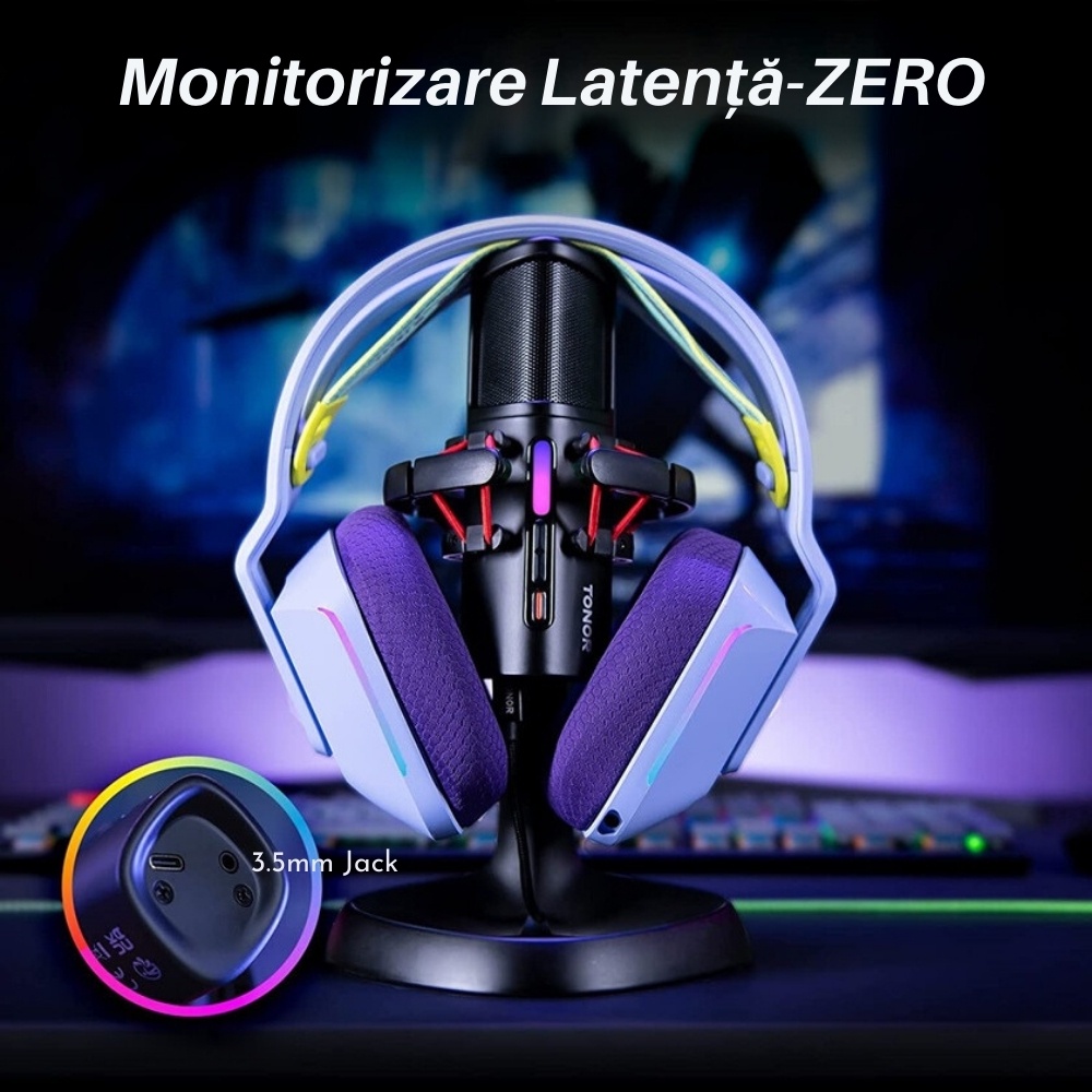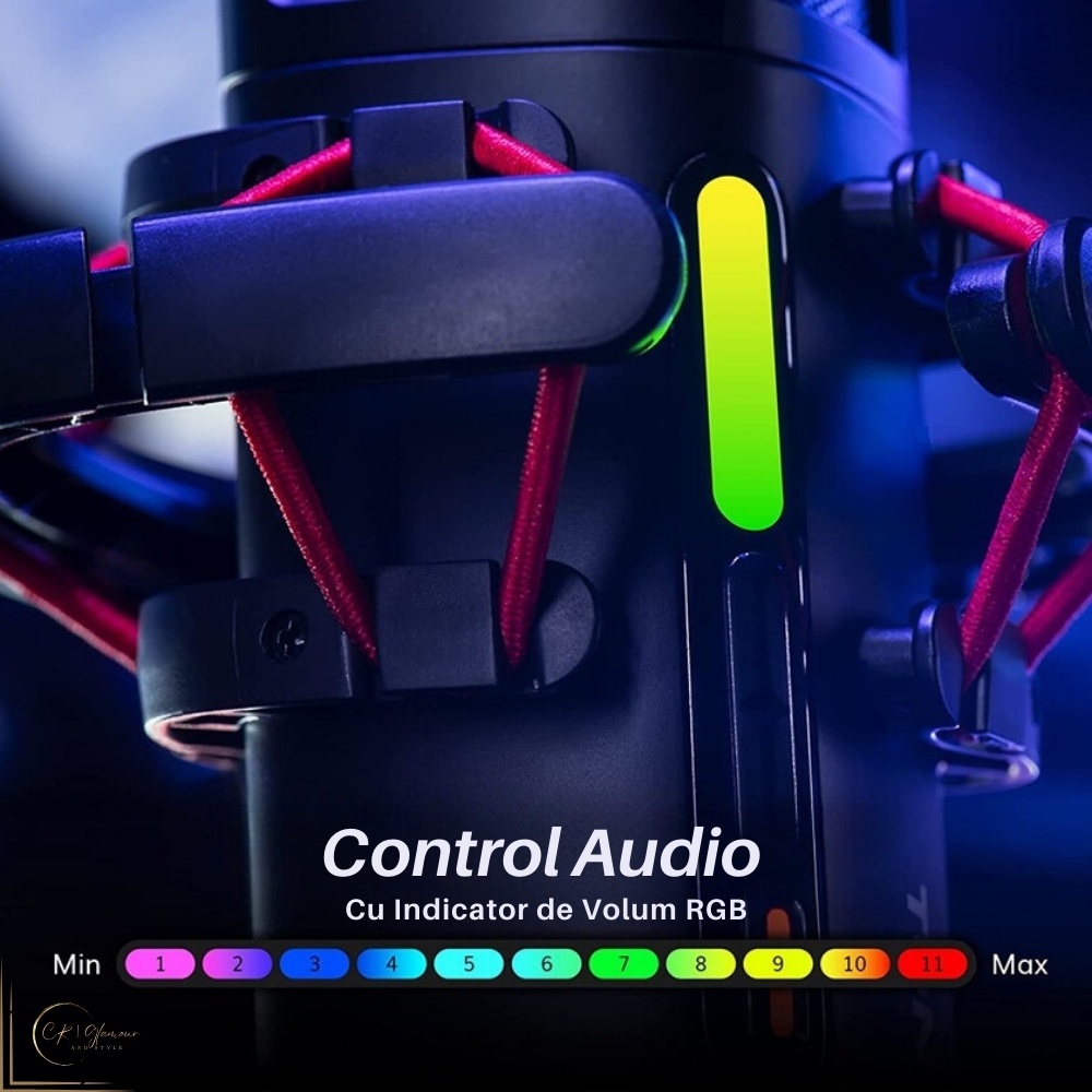 • Calitate Superioara a Sunetului: Microfonul de jocuri cu condensator utilizeaza un model de preluare cardioid pentru inregistrarea clara si precisa a sunetului.