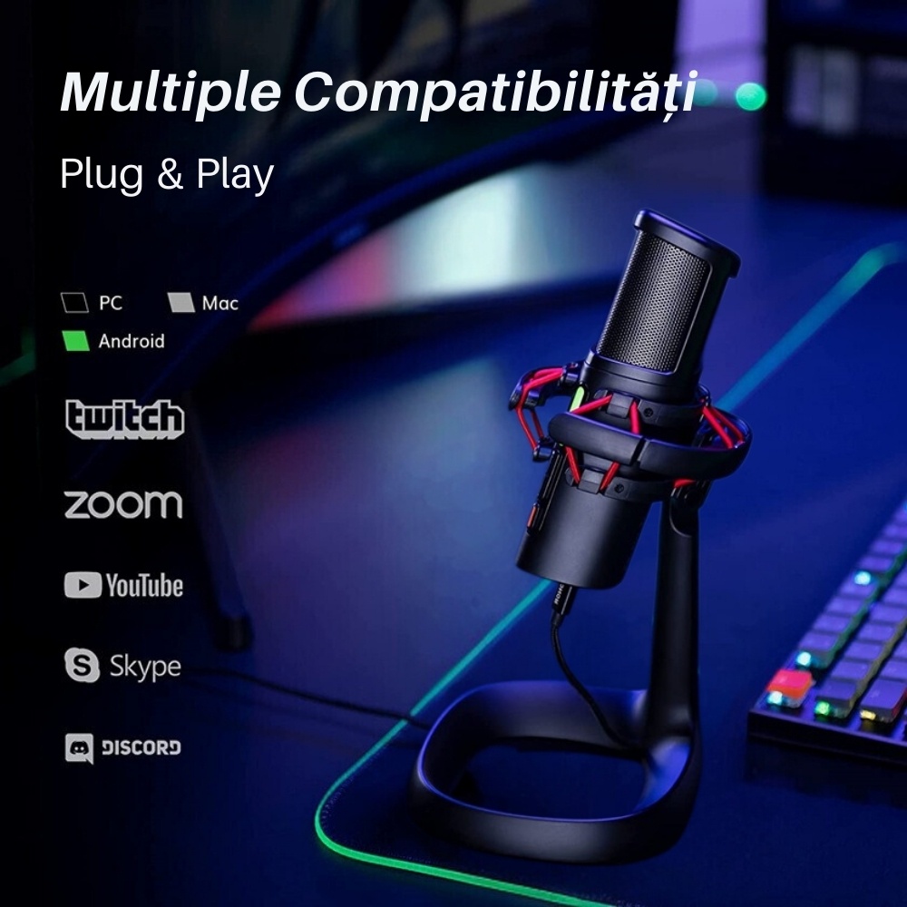 • Versatilitate: Ideal pentru Twitch, Discord, Skype, Teamspeak, streaming si comunicare in echipa.